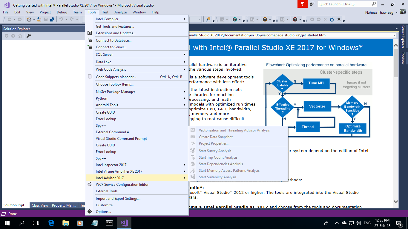 Since yesterday noon I have been trying to do this...Intel™ Parallel Studio XE is the software development kit (SDK) , C/C++ Compilers, from Intel™ ( Intel Corporation) and the software integrates with Microsoft™ Visual Studio 2017...This development environment will work best on Intel™ processors, chip sets, mother boards, and graphics cards by NVidia™...I use a Lenovo™ computer with Windows 10 Pro x64 with Intel™ processors and chips...I wrote a sample C++ program and successfully compiled the 64 bit code using the given Intel™ command line and using the switch "icl" to compile / link the program to .exe file and ran the program...As usual I praise Allah... I wrote Trademark symbol in the brands / companies here using the combination of "ALT" and "0153" and "Num Lock" keys to the right side edge of my computer keyboard...